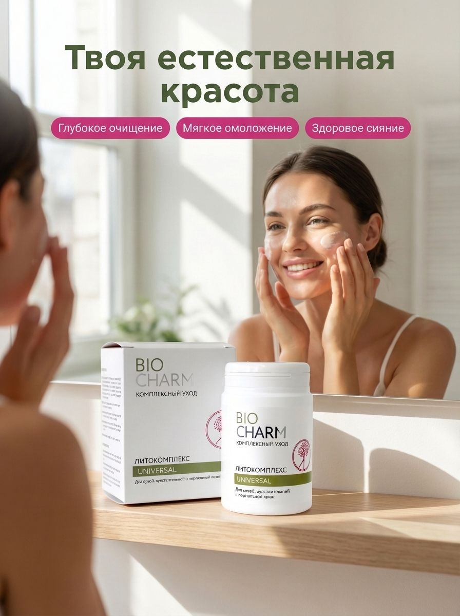 Литокомплекс BIOCHARM Universal осуществляет мягкий пилинг лица, не повреждая защитный слой кожи.