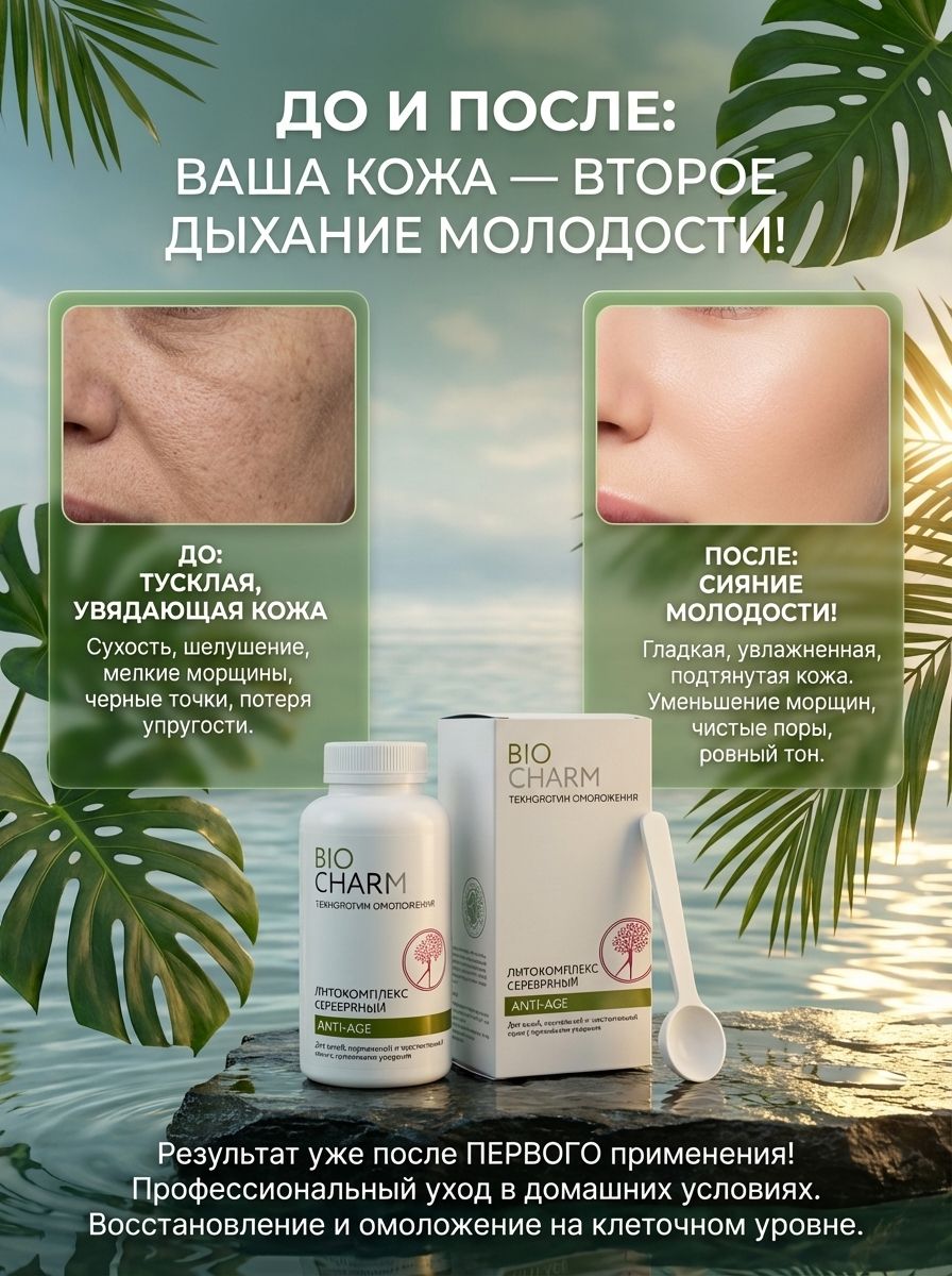 Серебряные литокомплексы Biocharm «Технологии омоложения» мягко и глубоко очищают кожу, не только не пересушивая её, а наоборот, восстанавливая нормальное влагосодержание коллагена дермы.