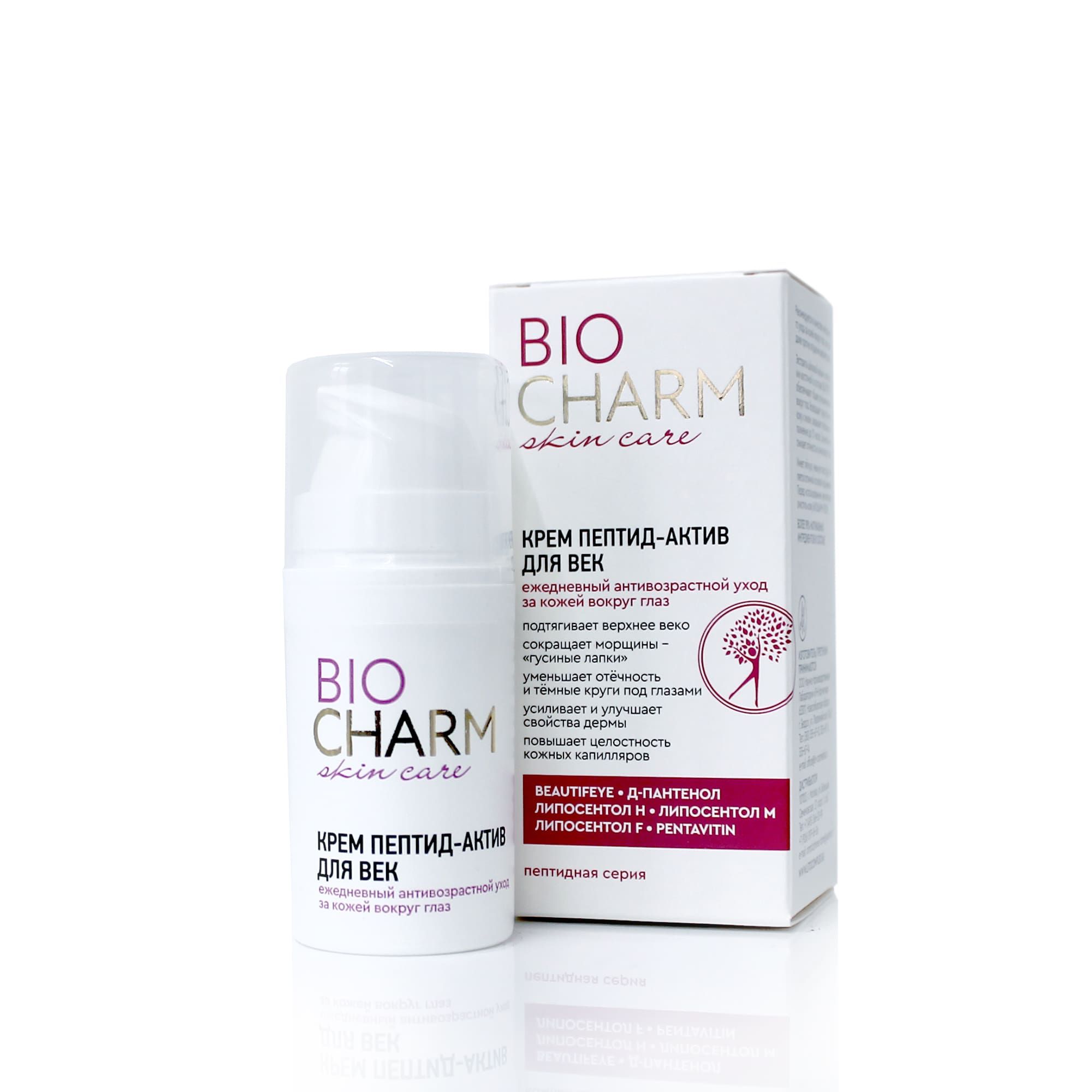 Серия «BIOCHARM», пептидная линия «SKIN CARE» Paraben Free. Не тестируется на животных.